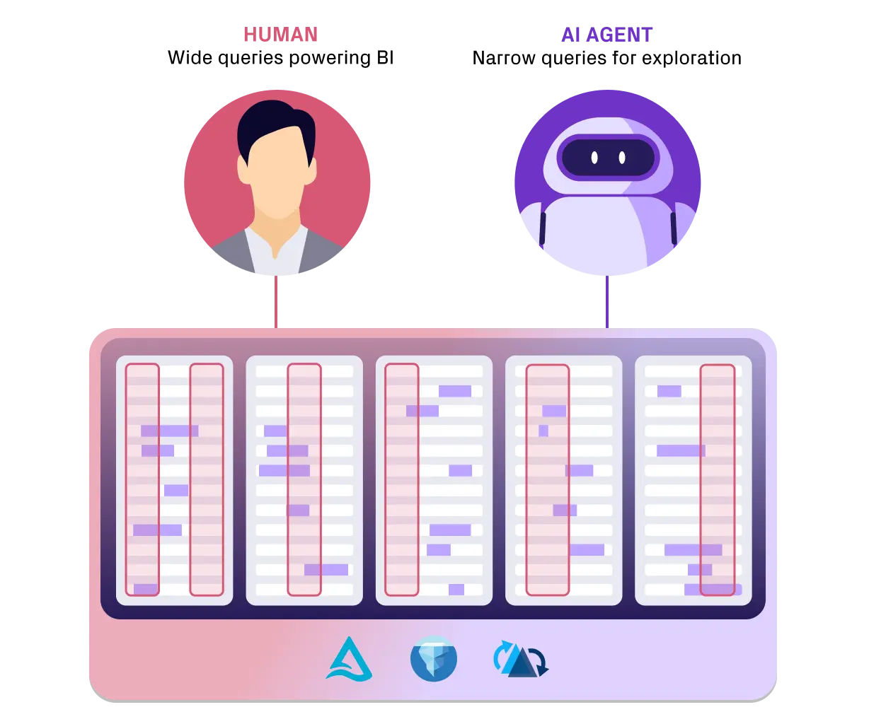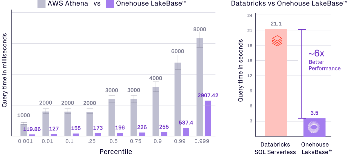 Automatic indexing and multi-tier caching deliver low-latency SQL directly on Iceberg/Hudi without copying data into a warehouse. Your AI Agents can do large joins in O(N) time with high-cardinality filters in seconds and needle-in-haystack lookups in milliseconds.